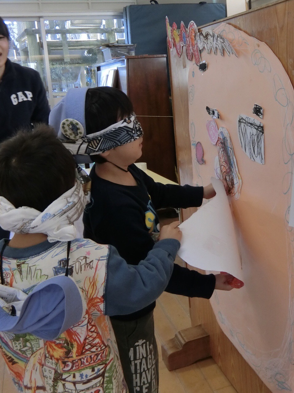 みんなで大きい福笑いを作って遊びました♪