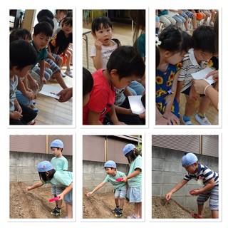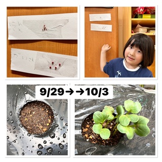 月曜日に、だいこんとにんじんの種をまきました。秋から冬にかけて実る野菜についてクラスで話し合い、「にんじんを育てて、焼きそばパーティーをしたいね!」などとみんなで決めたのです。