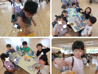 大好きなお弁当の時間。自分で座る場所を自由に選んで食べたり、当番グループで分かれて食べたり、いろいろな座り方をしながら楽しくお弁当食べています。先週からは、もっとお友達と出会えるように「くじびき弁当」が加わりました😊今回は色のくじを引いてそこに集まったお友達と座ります。くじを引く楽しさといろいろなお友達と食べられる楽しさ、ますますお弁当の時間が楽しみになったどんぐり組です。mh