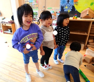 気持ち良く引き受けてくれた3人組はお互いに「せーの」とタイミングを取り「おかたづけですよー」と声を揃えて伝えてくれました。