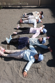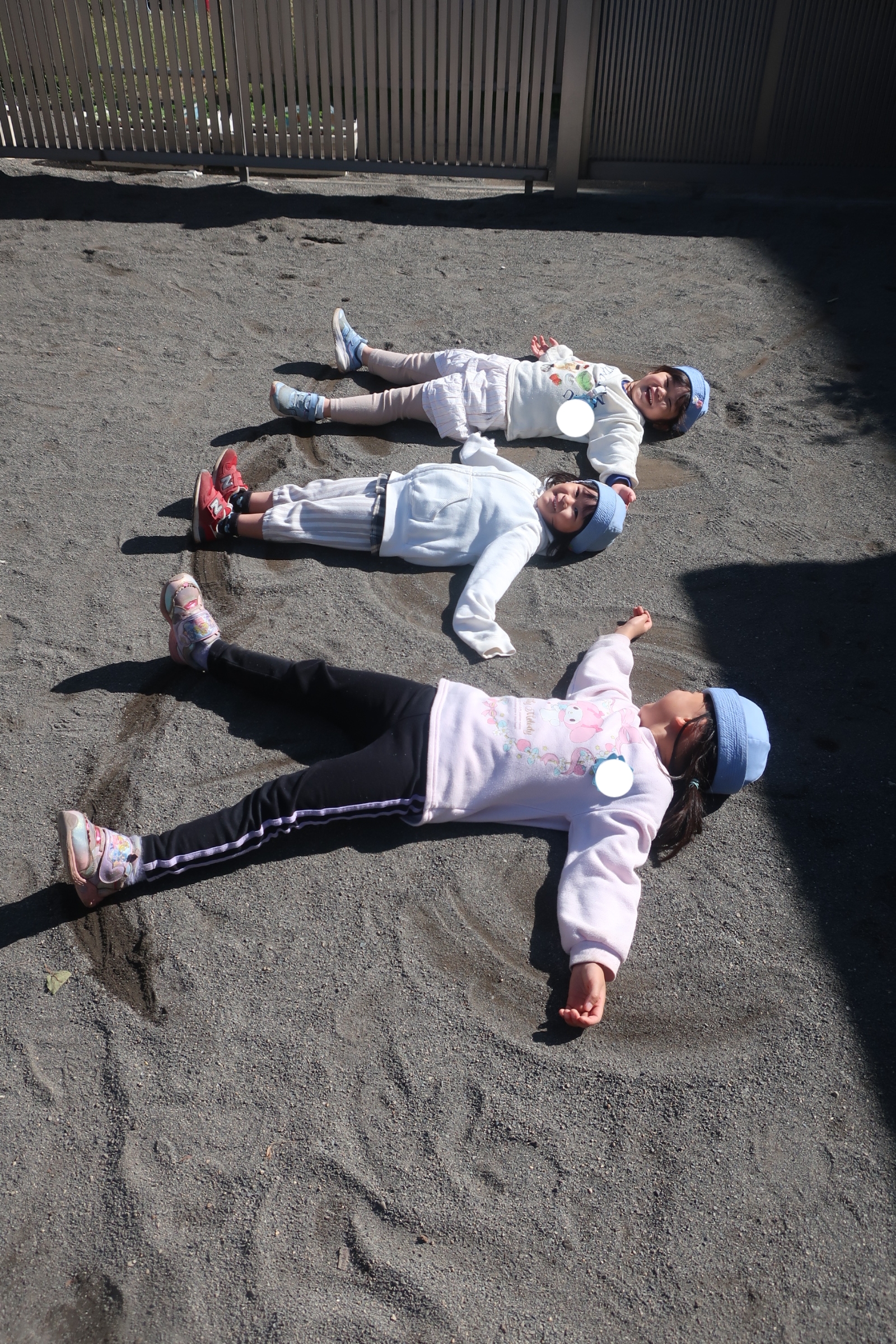 お外で遊んでいたら暖かくてついつい地面にごろーん!「あったかーい☺️」とひなたぼっこをしていたそうで。そんな姿につられてひなたぼっこ仲間が次々と増えていきました。最後は背中についた砂をひなたぼっこ仲間で落とし合っていましたよ😊mh