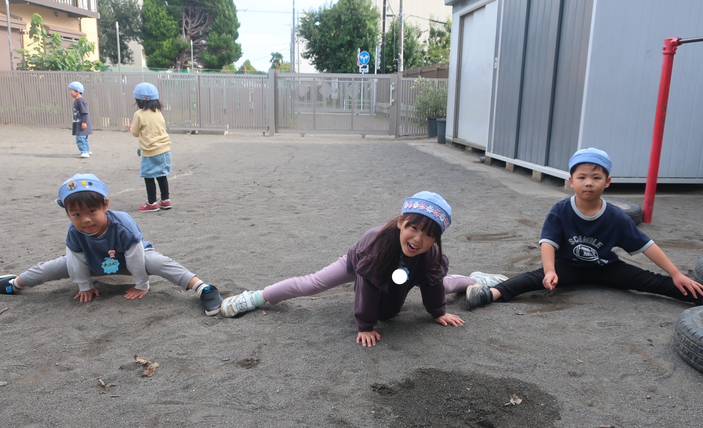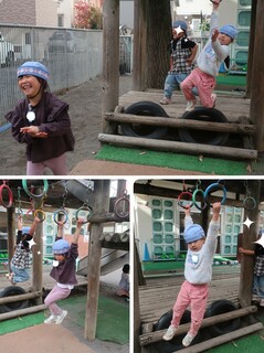 身体を動かす事がとっても好きなどんぐりさん。今日もさるわたり(吊り輪)や鉄棒で遊んだり、チャレンジをするたびに「みて!みて!みて!」とその姿を読んで見せてくれます。Hちゃんは何度もチャレンジをして手には赤い豆ができるほど。鉄棒で遊んでいたKちゃんとKくんとTくん。それぞれ技を見せてくれた後、「みて!こんなにやわらかいから!」と一列に並んで身体の柔らかさも披露してくれました😊mh