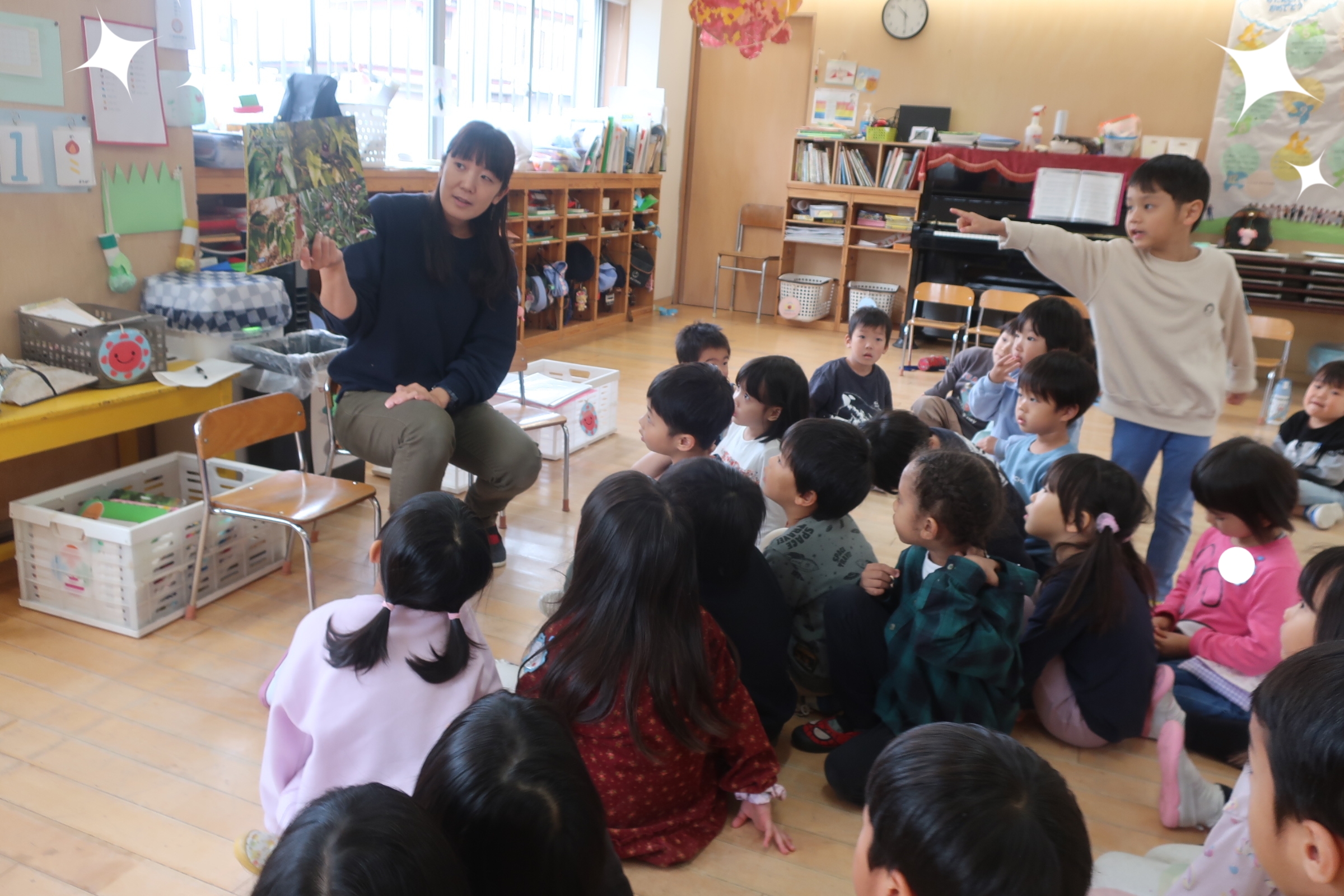 本を読みながら秋の不思議や楽しさをぐんぐん広げています。