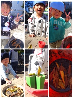 収穫感謝のカレーパーティーが嬉しかったいちごさんは、園庭にお鍋を並べてカレー屋さんをOpenしました🍛甘いカレー、辛いカレー、普通カレー、葉っぱカレー、石カレー、砂カレー、それぞれお店オリジナル商品が並びました。次の日はデザート屋さんも加わって、美味しいご馳走にお腹いっぱいになりました😋ak