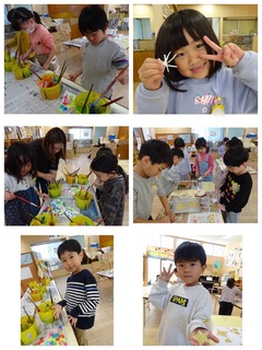 クリスマスを迎えることを楽しみにしているたんぽぽさんは、クリスマスツリーを不思議な粉を使って作りました🎄✨クリスマスツリーの形に切った紙にボンドを付けて、魔法の白い粉をかけて、絵の具をポトン...🖌️すると絵の具がじゅわ〜と広がります✨その不思議さを楽しんで作っていました。好きな形にお星さまを切り、金色に染めたトップスターも素敵です🌟通りかかる先生たちが「きれい〜!」「どうやって作ったの?」と言うと目を輝かせて説明しています✨am