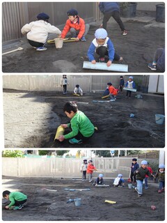 寒さが少しずつ厳しくなっていく中、子どもたちは元気に外あそびをしています!A君がはじめた道路作りが、いつのまにか仲間が増えて工事現場になりました園庭では、長縄やさるわたり、葉っぱのお風呂🍂などなど…たくさんの遊びを思いついて全身を使い楽しんでいます✨hro
