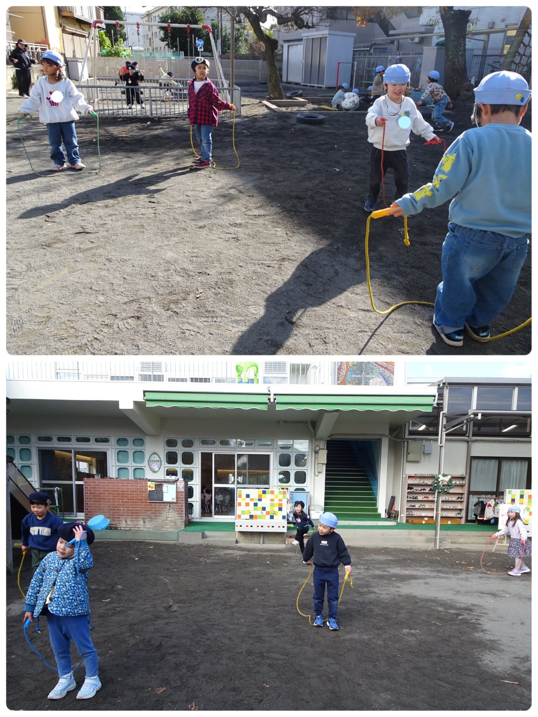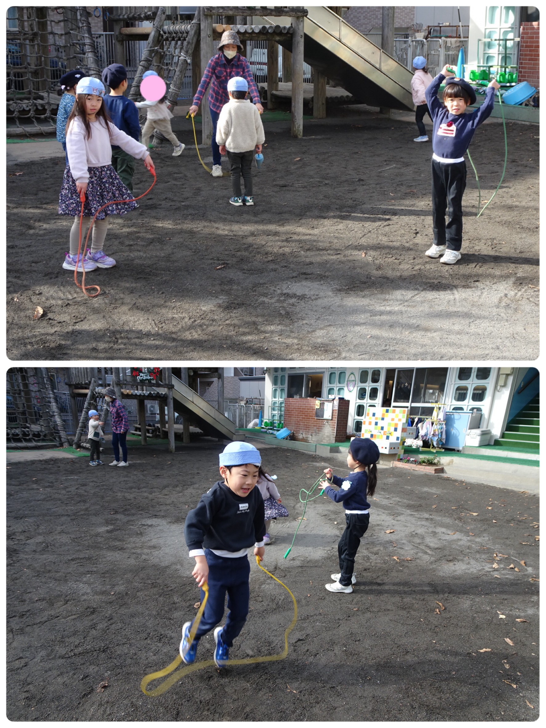 長縄跳びをする子どもたちから、「短い縄跳びでも遊びたい‼️」という声があがったので!念願の短縄跳び始めました✨ぴょんぴょん…!と連続で跳ぶ子もいれば、ぴょん!と1回1回を踏み締めて跳ぶ子もいて。まだまだ軽やかではないけれど、真剣に、ぴょん!を頑張るどんぐりさんです✨3学期にはぴょんぴょん名人が溢れてるはず✨🐰🐸✨hro