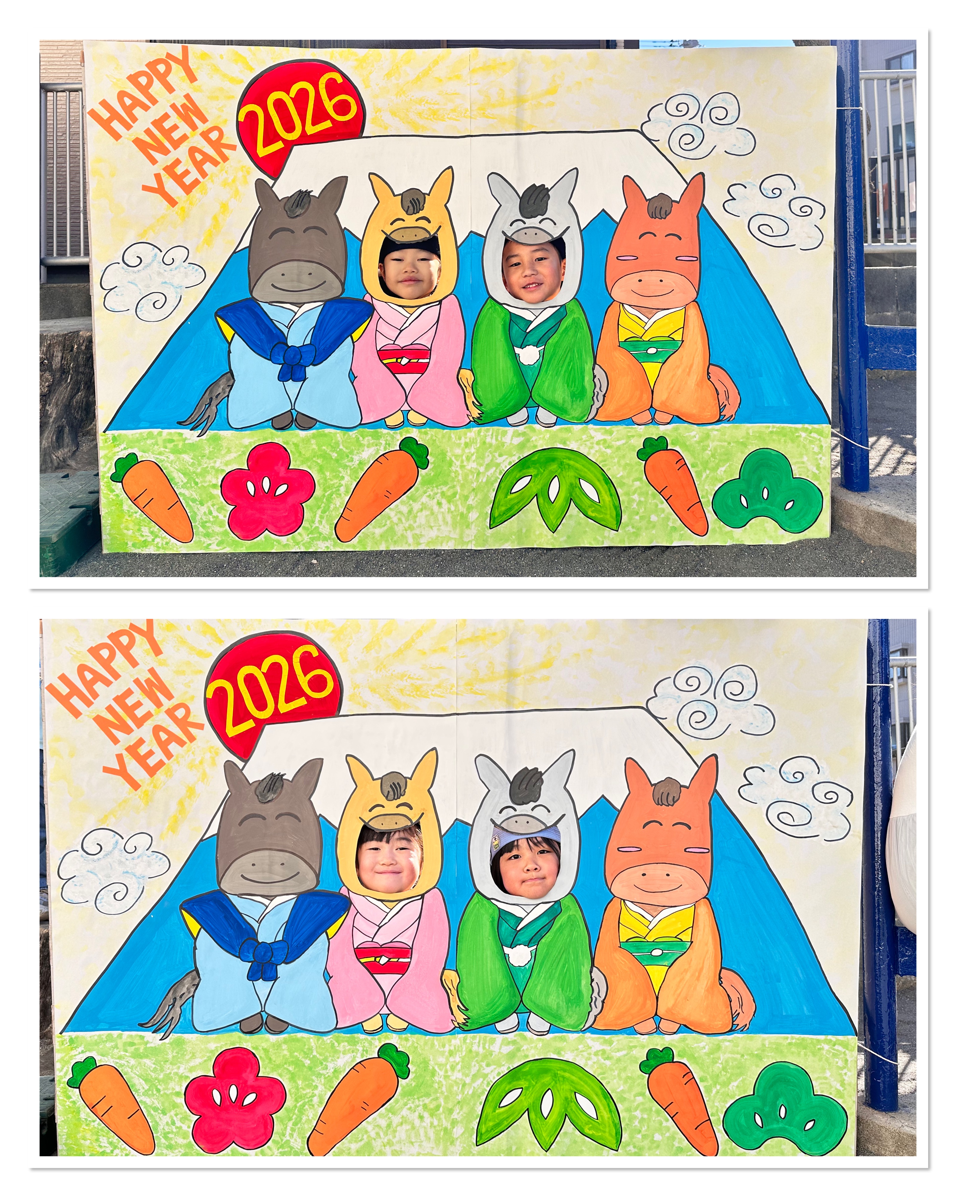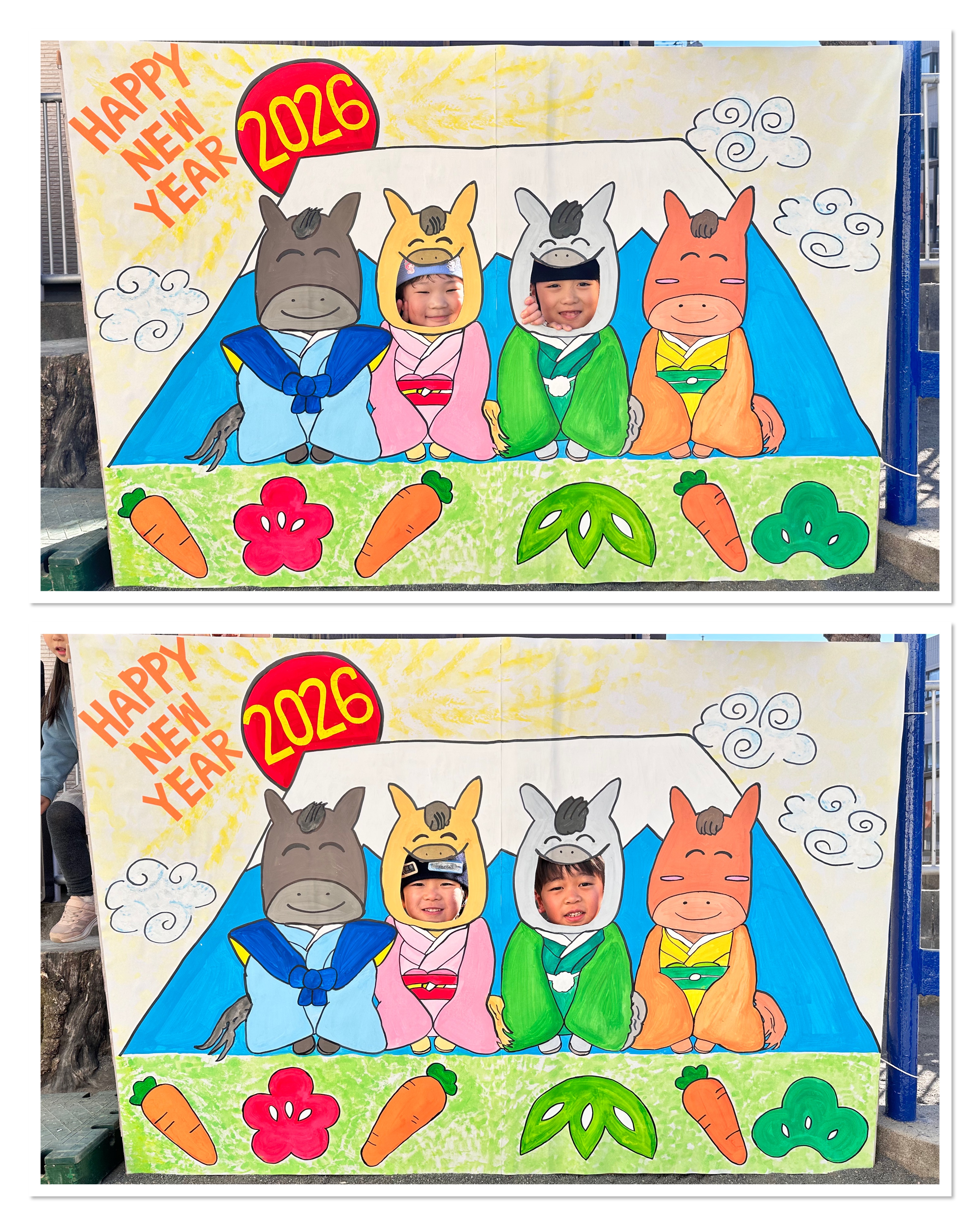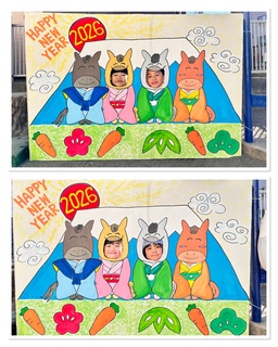 「明けましておめでとうございます。今年もよろしくお願いします。」と始業式でみんなでご挨拶をして3学期も元気にスタートしました!園庭には、今年の干支のお馬さんがいっぱい!馬にのってレースをしたり、顔をはめて写真を撮ったり、様々な遊びを楽しんでいました。冬休み中の楽しかったことや、チャレンジしたこともたくさん聞かせてくれたたんぽぽさん。来週からのシェアタイムも楽しみです♪tme