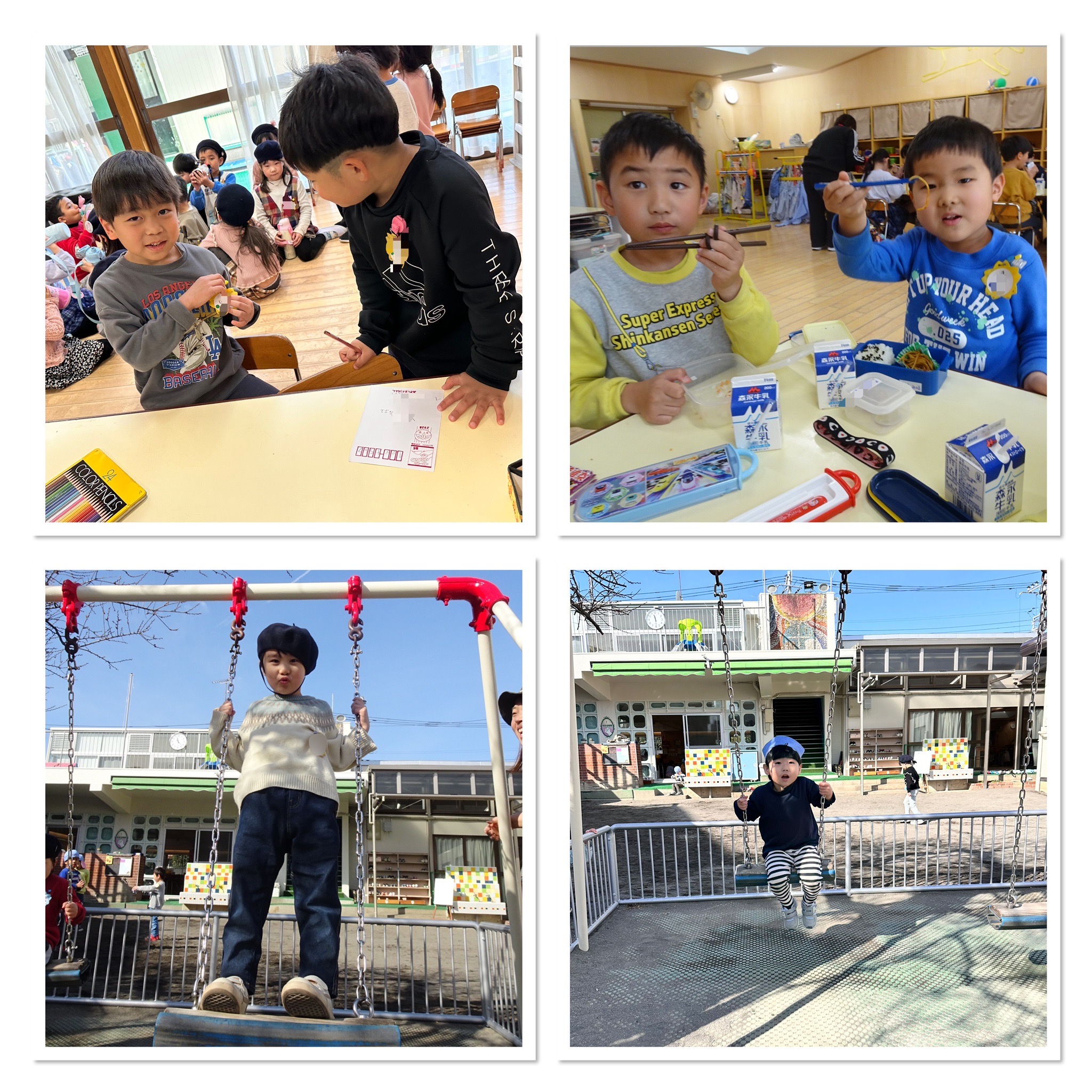 お箸や、ブランコ、さるわたり、縄跳び、お友達や自分の名前を手紙に書くことなど、『今までよりも』と頑張る姿がたくさんのところでみられます✨