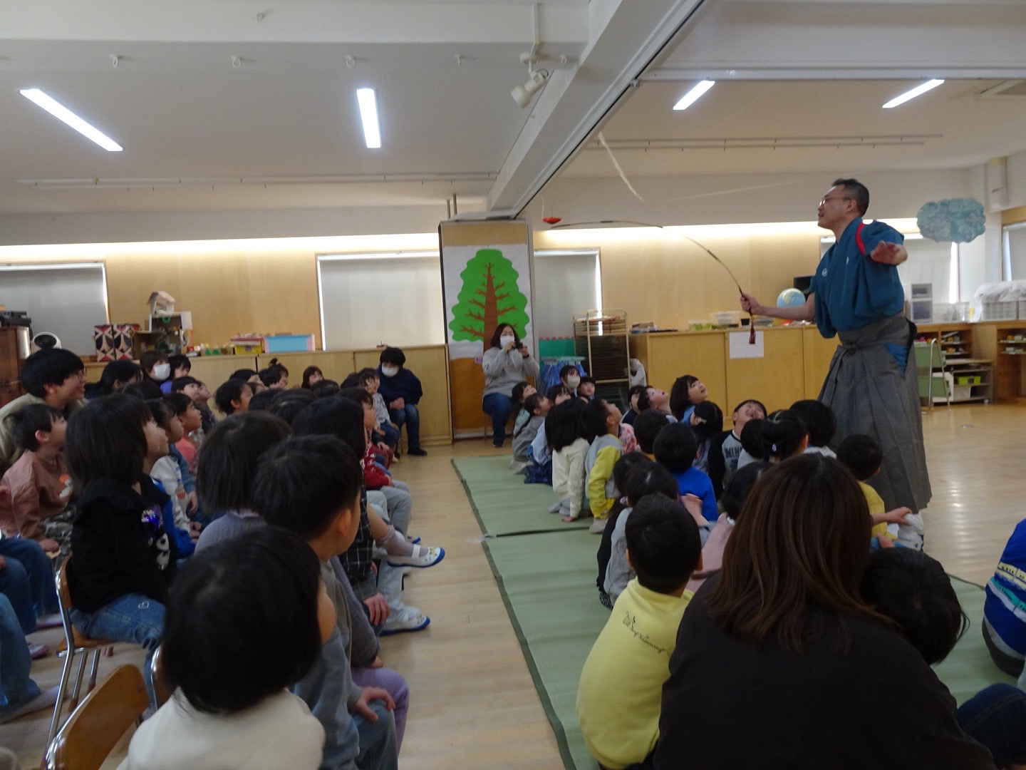 昭島幼稚園に江戸曲独楽師の三増紋右衛門さんが来てくださり、小さなコマや大きなコマを使って、さまざまな技を披露してくださいました。手の平の上でコマを回したり、剣や扇子の上にコマを乗せたりと、次々に繰り出される素晴らしい技に、子どもたちは「わぁ〜!」と目を輝かせながら驚いていました✨これから幼稚園でもコマ回しに挑戦し、少しずついろいろな技ができるようになっていくといいですね。am