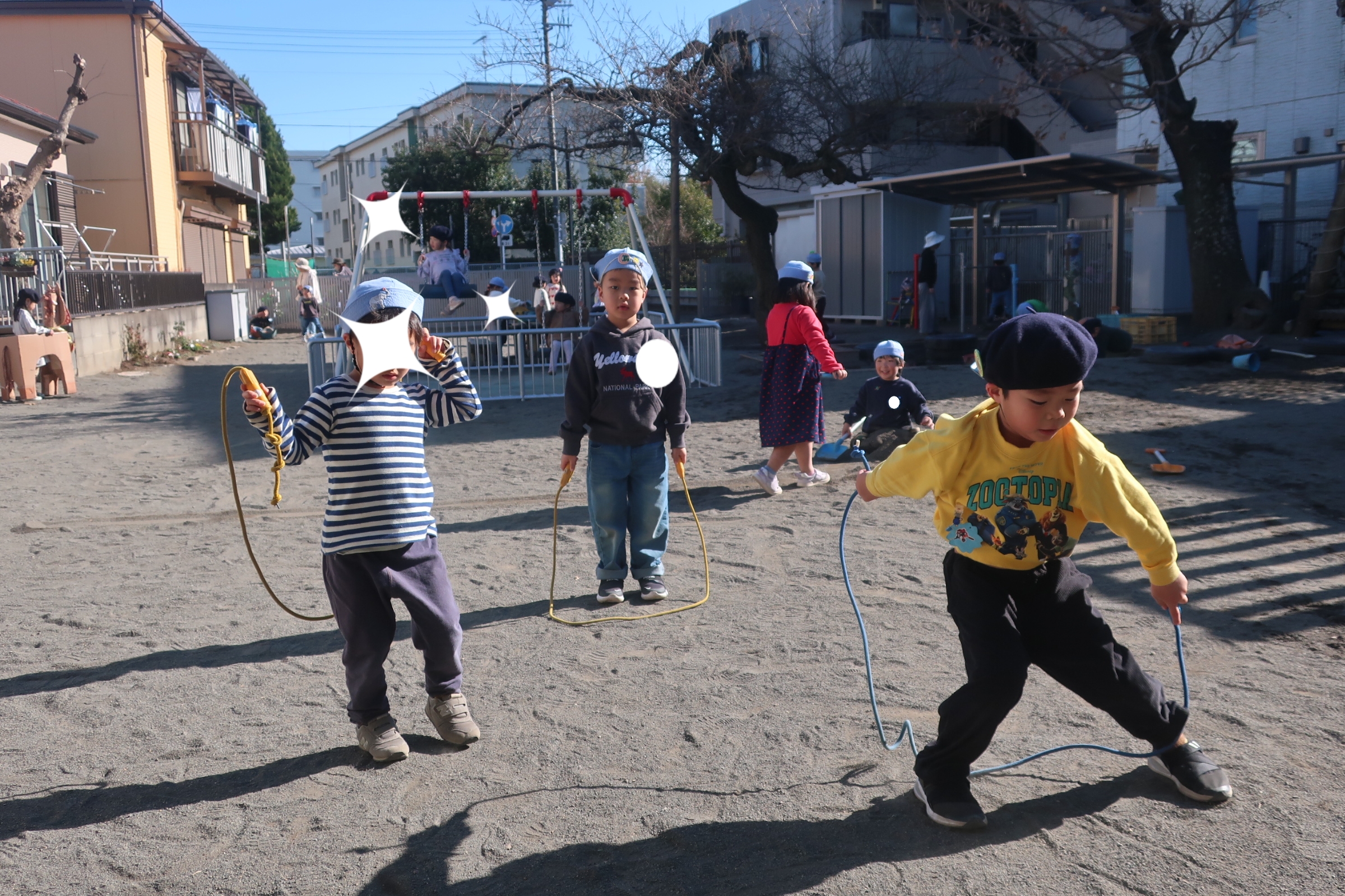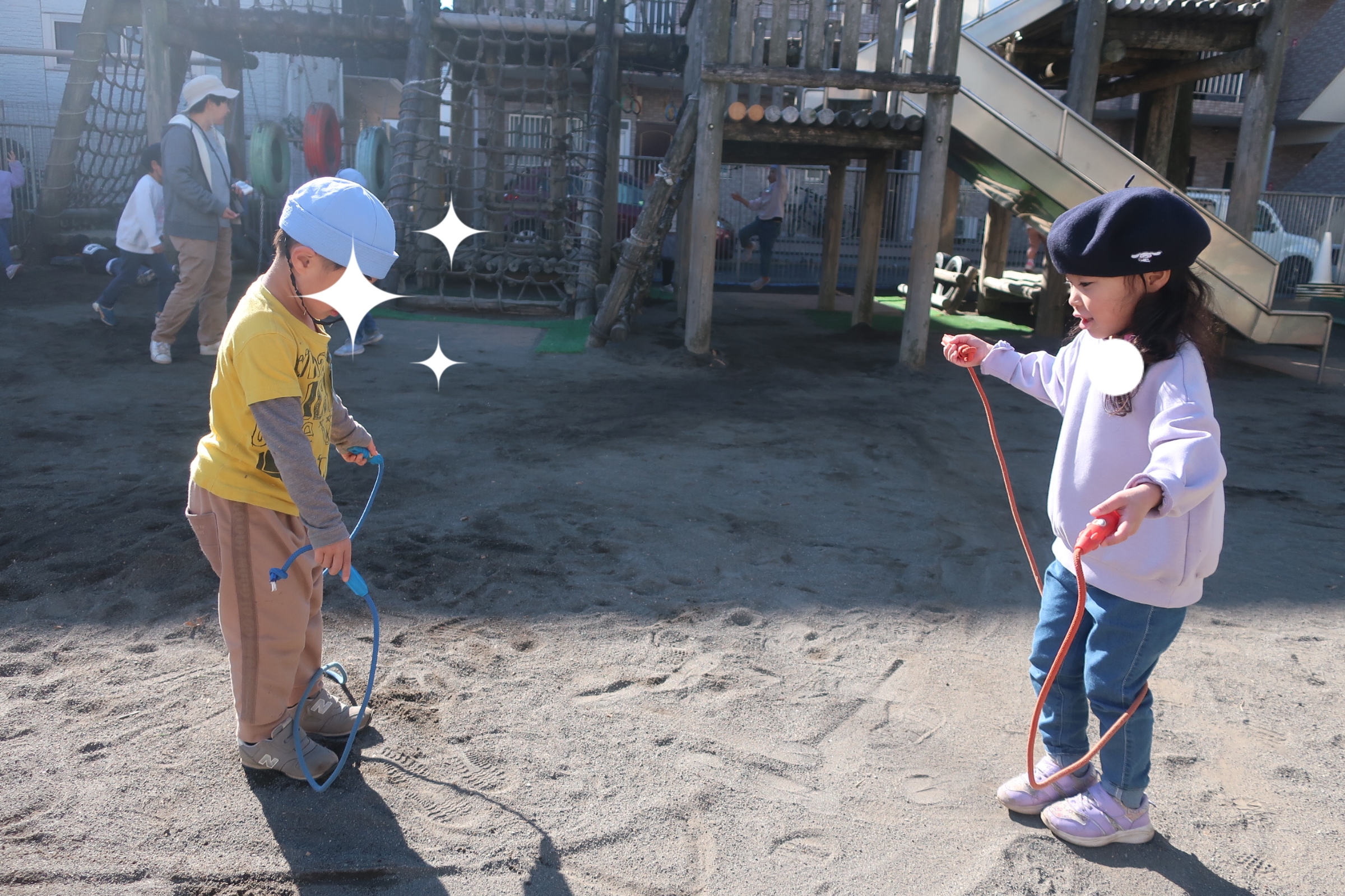 二学期から縄跳びチャレンジをしていたAちゃん。縄跳びが跳べるようになったAちゃんは縄跳びチャレンジし始めたKくんに跳び方を教えてあげました。そして、次はKくんからTくんへ。遊びの楽しさやチャレンジの楽しさがどんどん広がっています😊mh