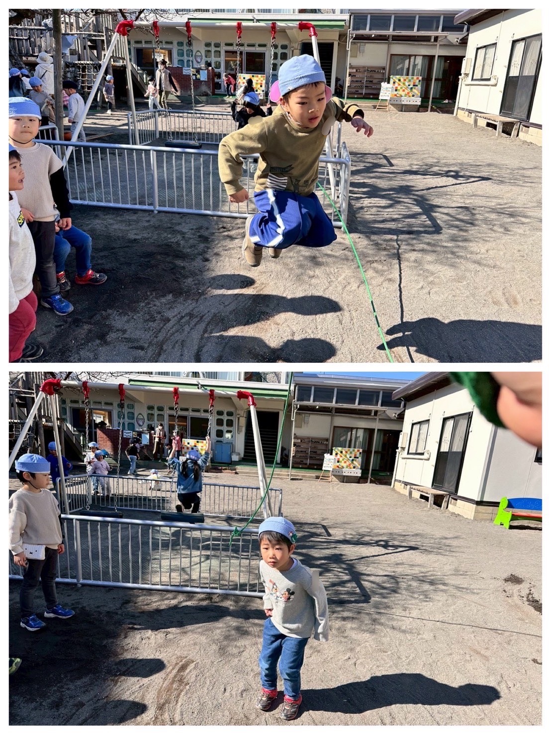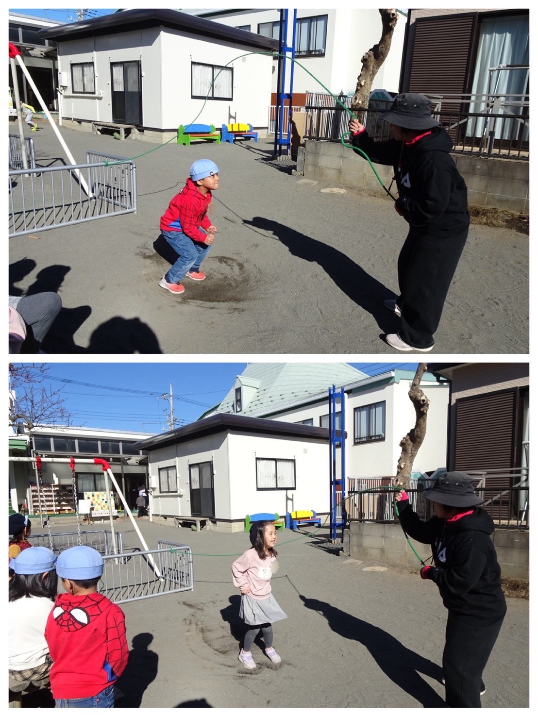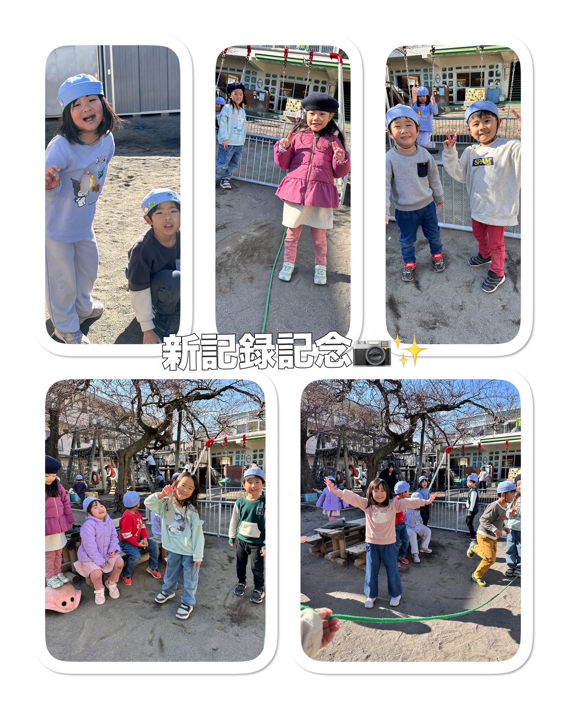 園外保育で大縄に挑戦してから、子どもたちのやる気にさらに火がつきました。お部屋では、大きな紙に記録を書き込みながら「つぎは〇回いけるかも!」と、回数更新を目指して挑戦しています。跳び方を教え合ったり、失敗しても声をかけ合ったり。そして、誰かの記録が伸びると、みんなで一緒に喜ぶたんぽぽさんです!大縄というひとつの遊びからも、仲間関係の育ちを感じます。tme