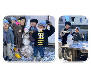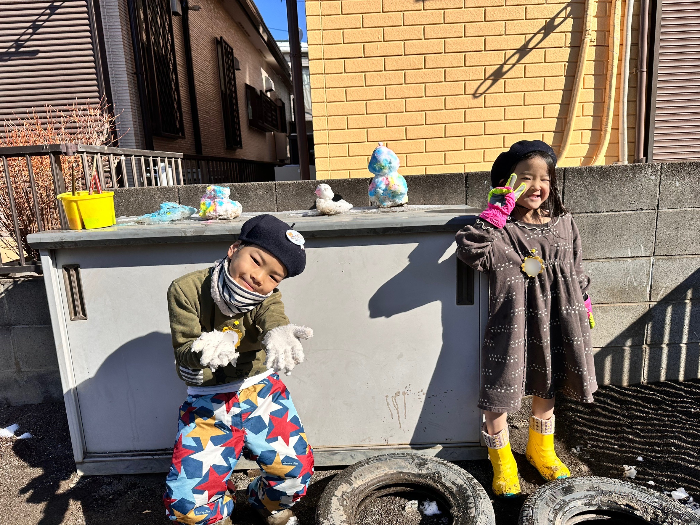 月曜日は、園庭で雪遊びをしました。手袋をして園庭に出ると、「つめたい!」「ふわふわだ!」と声をあげながら、雪に触れる子どもたち。絵の具で色をつけたり、友だちと力を合わせて大きな雪だるまを作ったり、雪合戦で走り回ったり。冬の自然を、全身で楽しんだ一日となりました。tme