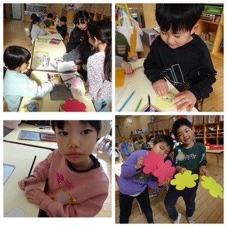 一枚一枚丁寧に花を切り、どんな絵を描こうか、どんな言葉を添えようかと考える姿には、小さなお友だちを思う気持ちあふれていました。