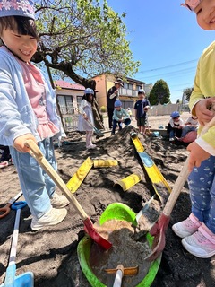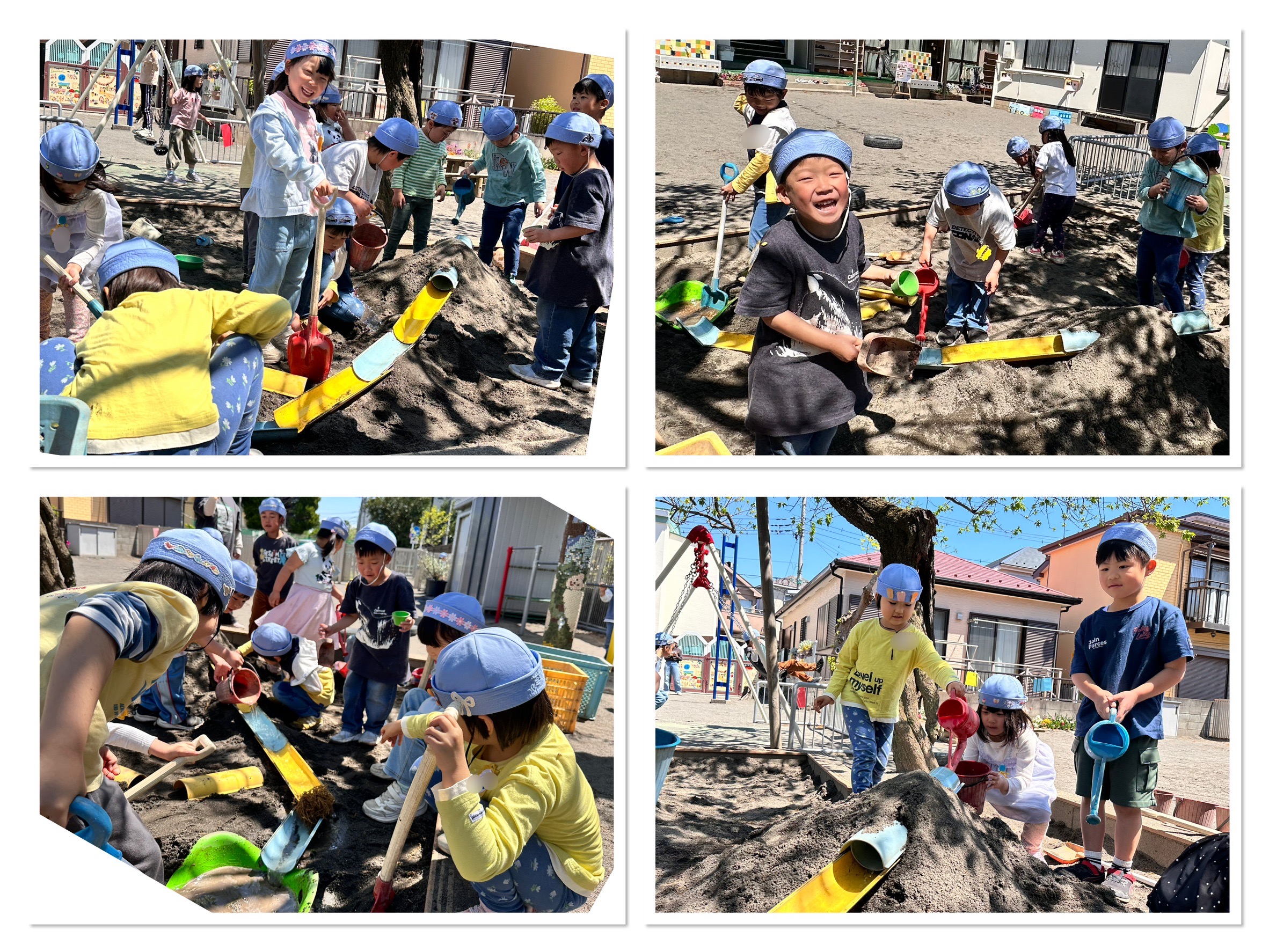 お天気が良く、気持ちのいい園庭で、スライダーを使って遊びました。