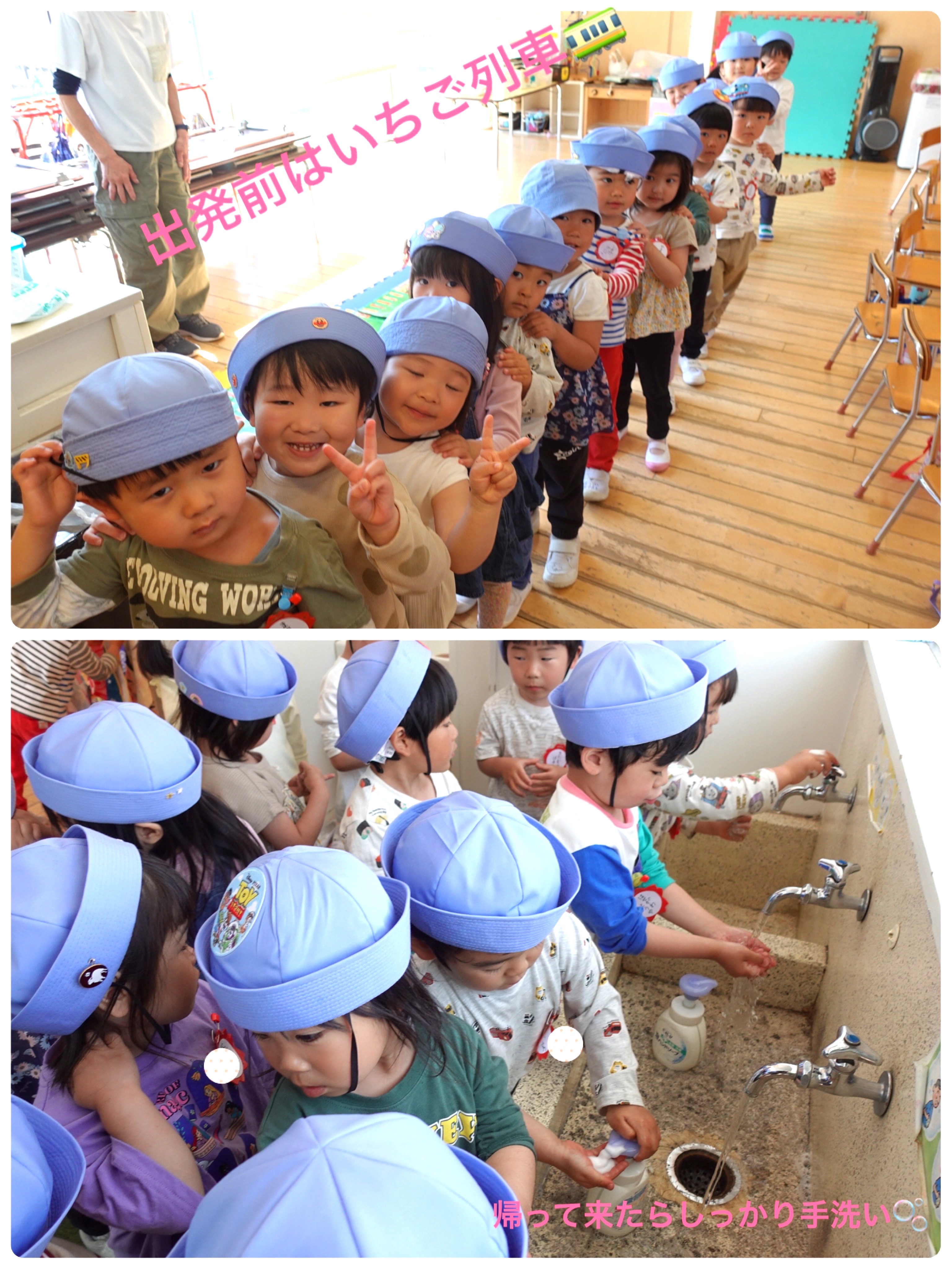 いちごさんの外遊びが始まりました。早速みんなで「いちご山」を作ったり、園庭に線路を書いて電車を走らせたり、気持ちの良いお天気の中で遊べましたね。Kくんはカップを使って、プリン作りです🍮いちごさんで初めて作ったプリンは普通のプリンでは無いそうです!なんと!スペシャルプリンです🍮✨嬉しい気持ちがいっぱい詰まっているのかな⁉️ak