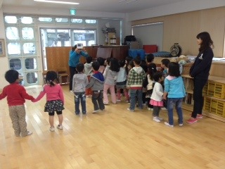 今日は2013年度初めての土曜自由登園日でした!全クラス合わて25人のお友達が集まりました(^o^)特別な土曜日はみんなで礼拝、ゲーム、お帰りの会まで一緒に過ごしました!園庭に飾ってあった先生たちのマークや変身していた動物を思いだしながら2人組になって遊びました(*^^*)年長のお兄さんお姉さんが年少さんの手を引いている姿は頼もしかったです☆sat