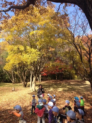たんぽぽ組(年長)2学期最後の遠足は…八国山へ行ってきました!紅葉や秋の実りが豊かな中でとても気持ちが良かったです。土手すべりやリレーも楽しんでいーっぱい遊んできました。TA