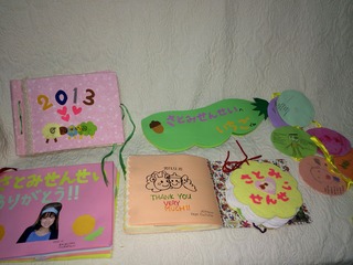 今日で出産のため、幼稚園を退職する私にこんなにもたくさんのアルバムを多くのかたからいただきました。クラスの子どもたち、年少のクラス、年長のクラス、またクラスを超えたお母様たちからのアルバム、さらには卒業生からのアルバムとこんなにいただき本当にありがとうございました!みなさんの心遣いに感謝します^_^とっても幸せな一日になりました!!大切に大切にさせていただきます。sat