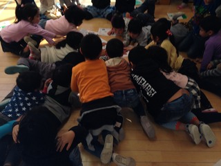 今年もたんぽぽ組オリジナルカルタ作り!!読み札と絵札も、自分達で考えました!ひとりひとり書き上げ!!金曜日には、第一回カルタ大会をしました。読み札を読み始めると…身を乗り出し、ダーイブ!!写真の通り〜大盛り上がりでした☆そして…父母会では〜お母さん達のカルタ大会もしました!こちらも大盛り上がり(^-^)みんなが楽しめるカルタが出来ました♪来週も引き続きカルタを楽しみたいと思います!MI