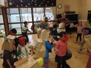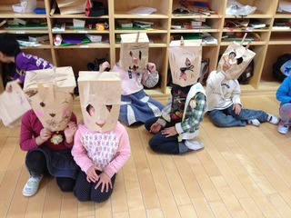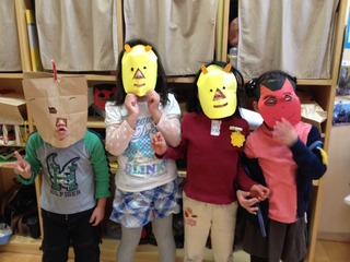 たんぽぽ組では、紙の袋を使って作るオニのお面、