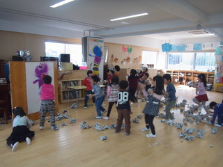 どんぐり組では2月3日の節分にむけて、自作の鬼を3グループで作りました。当日、豆は新聞紙をまるめて作りおもいっきり 鬼はそと~、ふくはうち~!!鬼たちの投げました。汗もかくくらいの激しいせつぶんごっこになりました。みんなの中から悪いものを出して、良いものが入ってきたかな?思う存分にせつぶんごっこをやりきったどんぐり組でした。MK