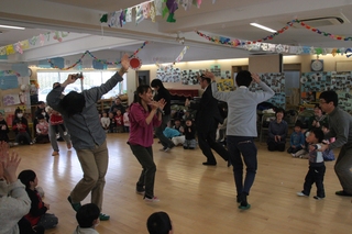保護者の方々もみんなで歌ってダンスして大盛り上がりでした。