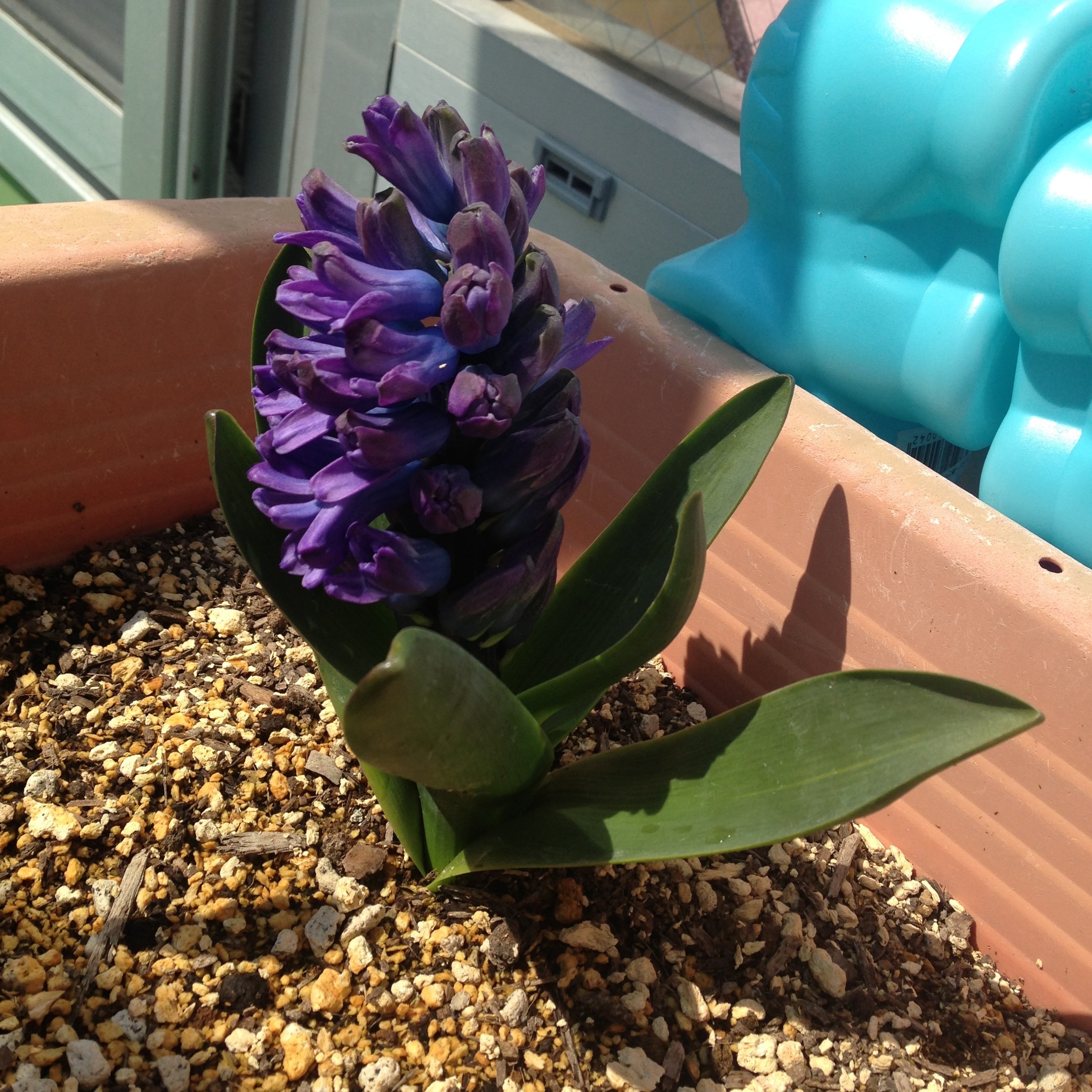 いちごぐみのみんなで大切にお世話をしていた青のヒヤシンスのお花が、ついに!!!咲きました(^O^)***テラスでおひさまの光をいっぱい浴びて元気いっぱいですよ*いちごぐみのみんなが修了したことをヒヤシンスのお花も一緒にお祝いしているみたいですね◎mh