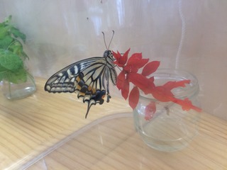 待ちに待ったこの日、アゲハチョウの美しさにうっとりとしたいちごさんでした。良かったですね!