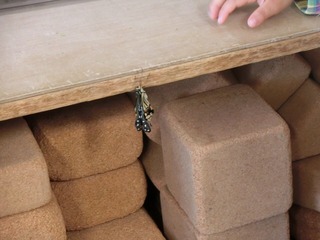 雨がたくさん降った金曜日。楽しみにしていた水遊びを我慢して、部屋遊びをしているとJ君が積み木の棚にアゲハチョウがいるのを発見しました‼︎