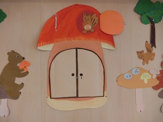 2学期がスタート!幼稚園には森を感じるものがいっぱい!みんなでワクワクしながらスタートしています。いちご組にはきのこのおうちが。でも窓もドアも鍵がかかっていて開かないんです。鍵を探してテラスや外にいる動物に聞いたり、砂を掘ったりするいちご組さん。お腹が空いて部屋に戻ってくると、木に鍵がかかっているのを発見!この鍵で上の窓が開き、きのこを食べているリスが出てきました。大喜びのみんな。もう一つドアの鍵も探し中です☆TA