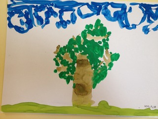 自由に絵の具を使えるように、クラスの机の上に置いておきました。すると、Nちゃんがやってきて、「使っていい?Nちゃん自然の絵を描くのが好きなの!」と言って描いた絵です。子どもの自由な絵の表現力や色彩使いに驚かされた作品です!MI
