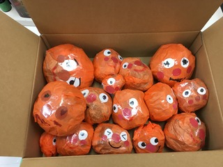 今日紹介するのは、こちら。どんぐり組のAちゃんとDくんのパンやさんより、箱いっぱいのあんぱん(マン)が届きました。どうやら、眠い顔の子を食べると眠くなるらしい。次は食パンに挑戦中です、MM