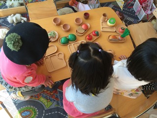 いちごさんは、待ちに待った3学期を元気にスタートすることができました。3学期から新しいお友だち、HM ちゃんが仲間入りし嬉しかったですね。 2学期のこどもまつりの収益でお母様方に贈っていただいた木製のままごとセットや 絵本を見て、歓声があがり、さっそく豊かな遊びが展開しています。「大切に使おうね」を合言葉に、一人ひとりの遊びをじっくり深めることができる良い学期となりますように。 今年もよろしくお願いいたします。IH