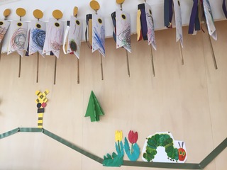 4月に入園したいちご組も、元気に幼稚園で過ごしています♪クレヨンでぐるぐるを描いたこいのぼりを作ったり、春のお庭で砂場やアスレチック、虫探しなどをしたりして遊んでいます。TA