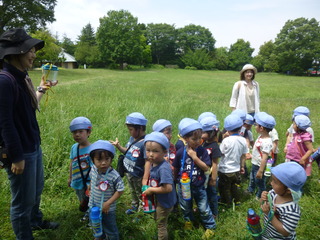 羊バスに乗って初めての園外保育へ昭和記念公園の砂川口に行きました。羊バスに乗ることも楽しみにしていたいちごさん。切符を作ってゆう先生にお願いをして羊バスに乗りました!バスから降りて手を繋いで砂川口へ行きました。フラフープやロープで電車ごっこをしたり、シロツメクサやアカツメクサを摘んで花束を作って遊びました!てんとう虫を捕まえて観察して、虫とも触れ合いました。沢山走って沢山遊んで楽しみにしていた羊バスにも乗れて大満足ないちごさんでした♪R