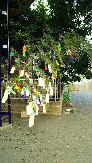 今年もKさんのご協力により、立派な笹に七夕飾りをつけることができました。今日は年長の親子遠足だったので、幼稚園に戻ってくると年少・年中組のこどもたちやお母さんたちの短冊が飾られてました。みんなの夢が叶いますように…。Kさん、ありがとうございましたm(__)mOKK