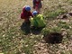 子どもたちは、落ちている梅のつぼみや花を拾い集め、楽しんでいます。